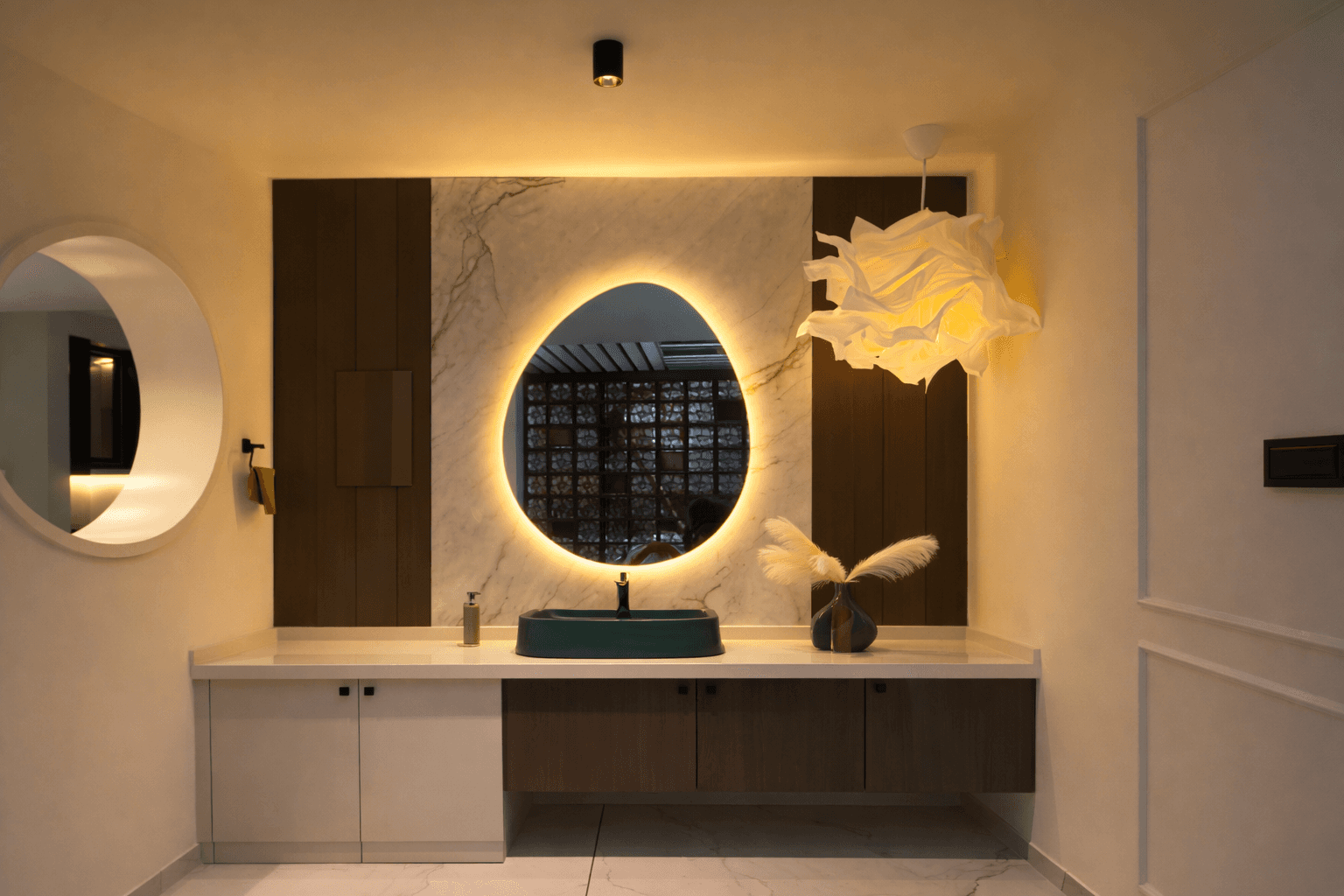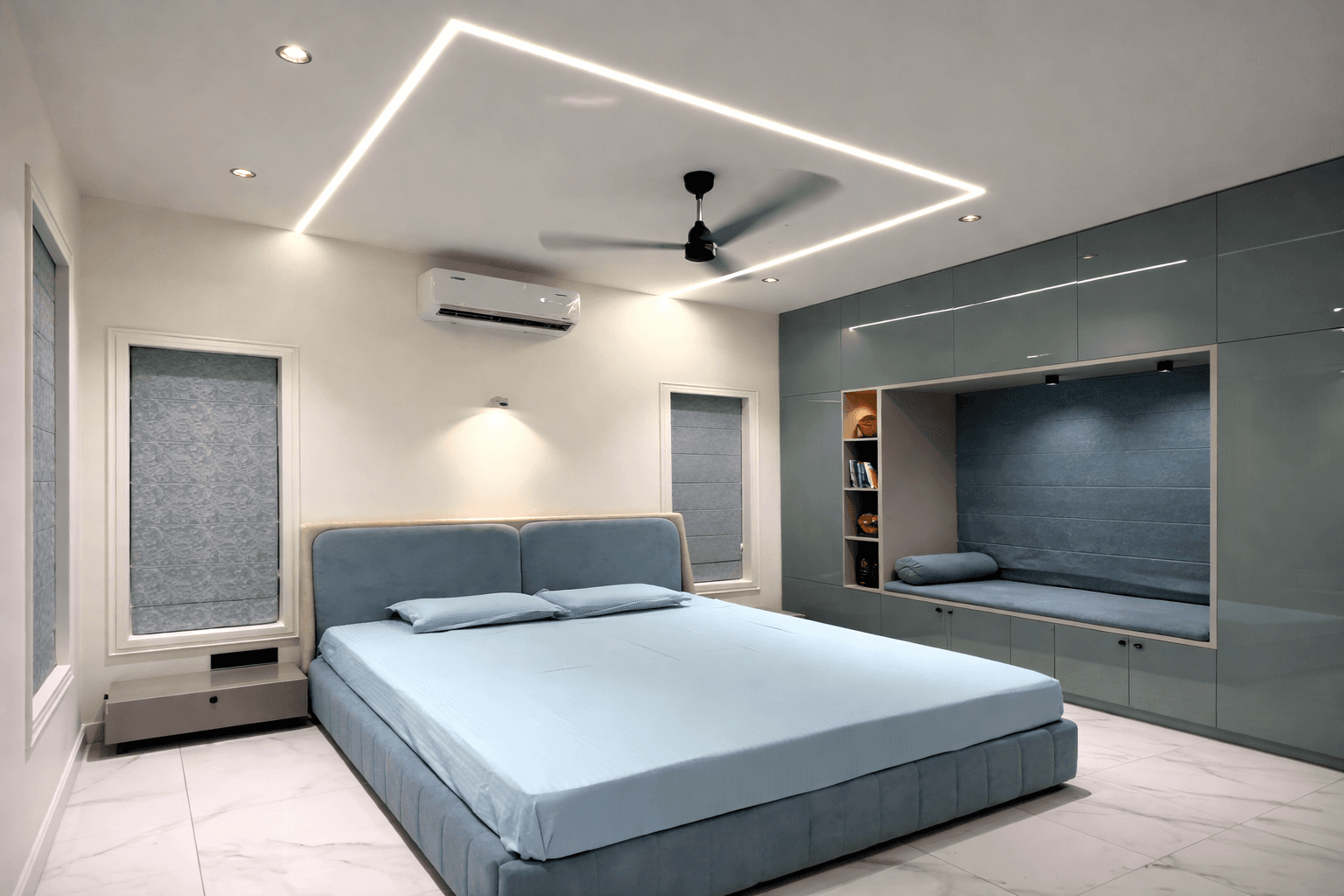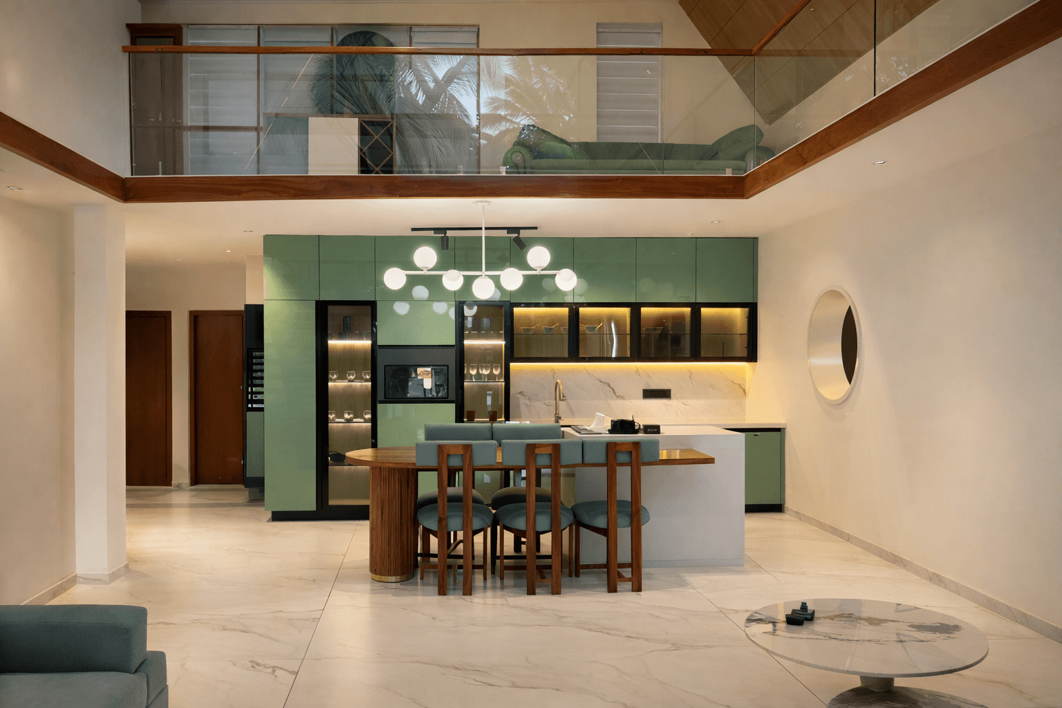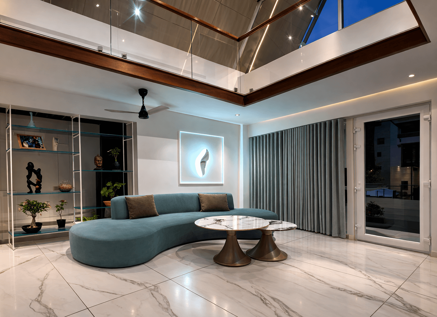 The interiors were designed to complement the distinctive A frame structure while making efficient use of the available space. The height created by the sloped ceiling was used to enhance openness and allow layered lighting that highlights the architectural form. Neutral tones, natural textures, and practical furniture layouts were introduced to create a balanced and inviting living space.